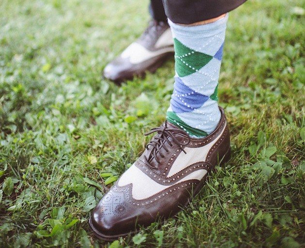 Редко сейчас увидишь свадьбу, на которой жених бы не щеголял своими носками! Персонализированные инициалы, яркие цвета или полужирные отпечатки, носки – еще один аспект наряда, где жених может немного повеселиться.