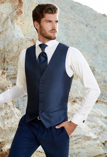 Еще одной деталью костюма выступает жилет. Эту деталь носят, как правило, со смокингом, который имеет воротник с заостренными лацканами. Комплект с жилетом можно дополнить подтяжками, но нужно следить, чтобы этот аксессуар был полностью скрыт жилетом.