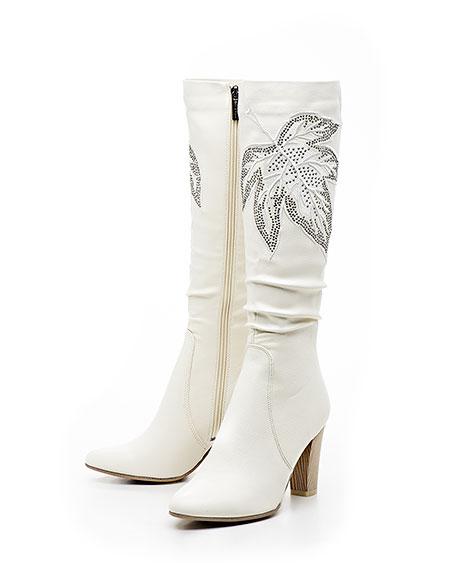 А вот на прогулку возьмите более практичные модели. Например, кожаные или замшевые сапожки, украшенные стразами.