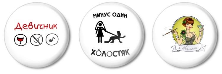 - Значки с тематическими надписями, к примеру: «Мафия невесты!», «Дикий девичник» создадут нужное настроение и останутся на память как сувениры.