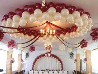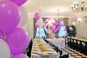 Сейчас входит в моду западная традиция выбирать цвет свадьбы. Он присутствует во всем свадебном декоре, включая украшения на свадьбу из шаров зала для банкета. В таком случае, при выборе ресторана либо кафе нужно учитывать оформление интерьера. Будет ли гармонично сочетаться основной цвет вашего торжества с цветом стен, потолка, штор и мебели зала.