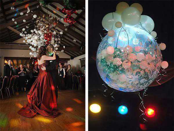 Внутрь закладывается специальный детонатор с дистанционным устройством. Шар-сюрприз взрывают во время первого танца молодых.