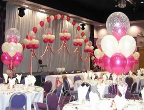 В этих случаях важно создать яркий и цепляющий дизайн помещения, а проще всего сделать это с помощью шаров. Достаточно подобрать 2-3 сочетающихся оттенка и оформить в них зал. Воздушные шары можно располагать в виде арок, цветов, в абстрактном варианте и в форме фигур, подходящих к конкретной тематике торжества.