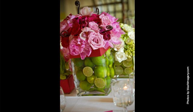 Для оформления праздника может подойти всё, что подскажет вам ваше сердце. Самое главное правило: не бойтесь экспериментов. Бойтесь быть как все. Казалось бы, что может быть проще: использовать фрукты в оформлении стола. Но посмотрите как эффектно смотрятся обычные лаймы в вазах.