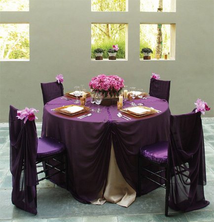 Под скатерть обязательно рекомендуют подкладывать техническую скатерть, чтобы выровнять поверхность под приборами. Часто в украшении используют драпировку из легкой ткани. Не лишней в оформлении торжественного стола будет нарядная юбка, которая вносит в интерьер праздника нотки королевской роскоши.