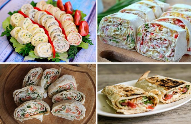 Рулетики с крабовыми палочками / рыбой / ветчиной (в лаваше):