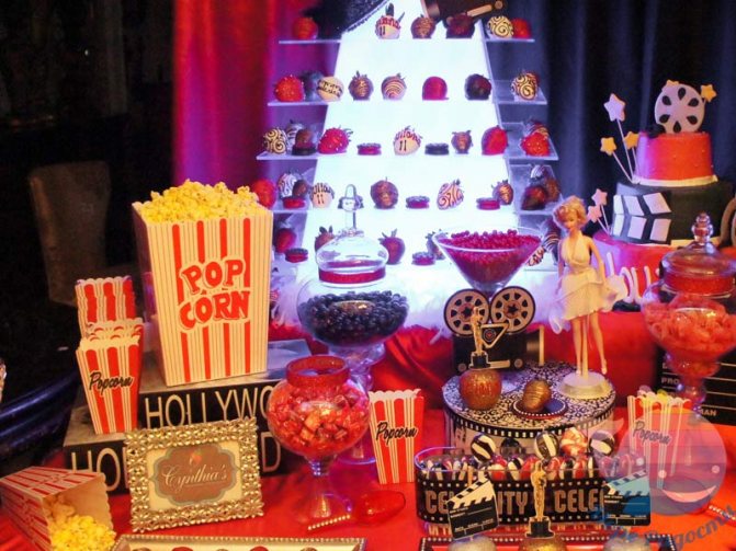 Также весело и по молодежному провести время позволит конкурс в стиле киномании. Предварительно остановитесь на определенном жанре (комедии, фантастики или ужасе). Также заранее можно подготовить все необходимое – одежду, оружие или шляпы. Именинник может быть в качестве режиссера, который будет снимать всех гостей. Предложите каждому свою роль и позвольте ее прочитать. Помимо актеров выберите оператора, который будет снимать все действие на камеру. Завершить вечер интересно с проведением церемонии вручения «Оскара» (такую статуэтку можно приобрести на сайте или взять обычных кукол из пластмассы и покрыть их лаком золотого оттенка). Обозначьте следующие призы: лучший костюм у актера, лучший тост, лучшее исполнение песни, лучшая игра в этом жанре и тому подобное.