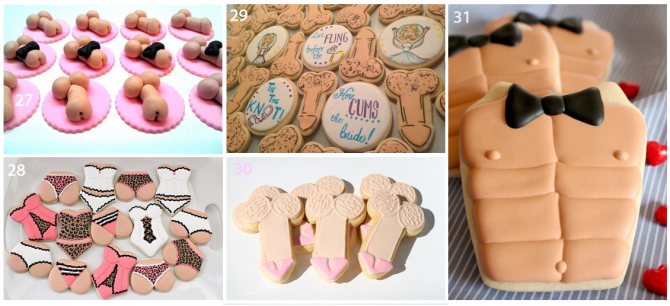 Печенье можно заказать в качестве закуски. Печенья в виде мужского достоинства безусловно порадуют компанию. Если вы хотите что-то более скромное, выберите, например, мужской торс.