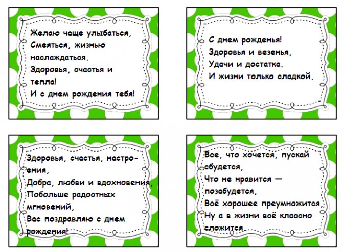 - В качестве поздравления на шаблонах можно использовать традиционные пожелания в прозе, короткие стишки, афоризмы, комплименты и другие высказывания, которые будут уместны в каждом отдельном случае.