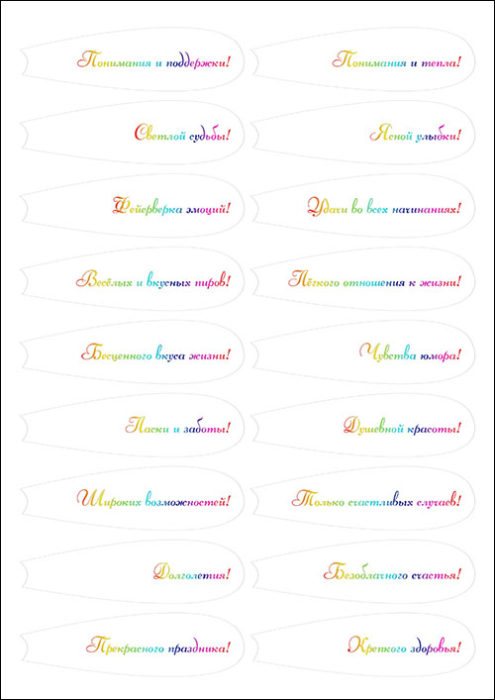 Итак, перейдет к выбору шаблонов для конфет с поздравлениями. Выбирайте понравившийся вариант и смело распечатайте.