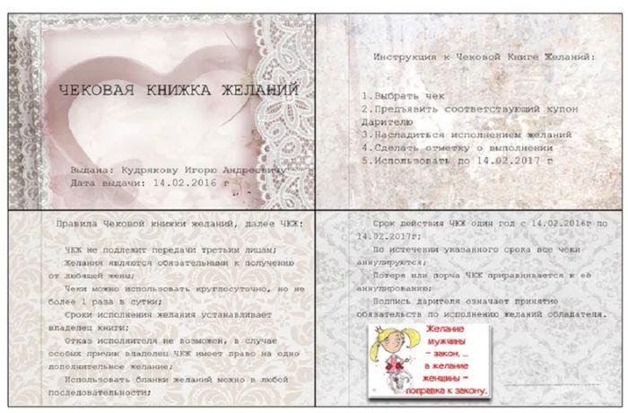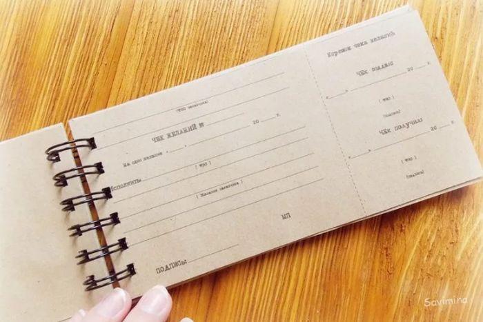 Отличная идея оформить еще и содержание с номерами чеков и названиями желаний.