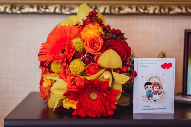 В букете допустимо присутствие красного, но его не должно быть много: пусть остаётся акцентом, а не ведущей краской.