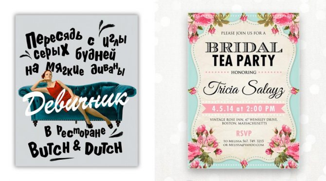 Каждая пригласительная открытка – это не просто стильная карточка. Она должна быть такой, чтобы подружки получили всю необходимую информацию о предстоящем перед свадьбой мероприятии. Поэтому карточка должна отразить: