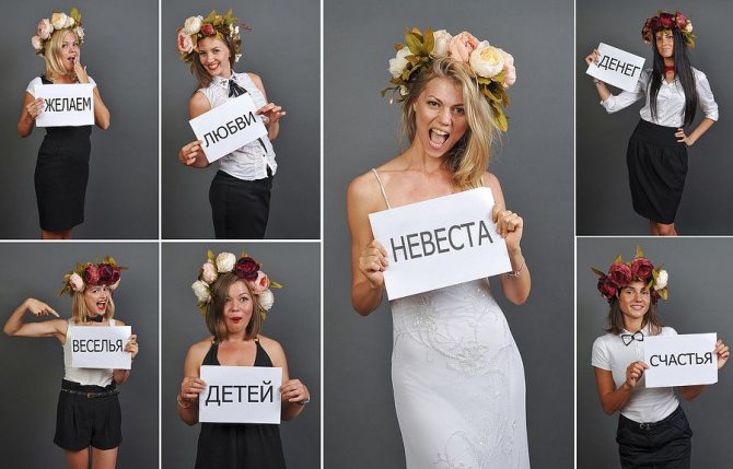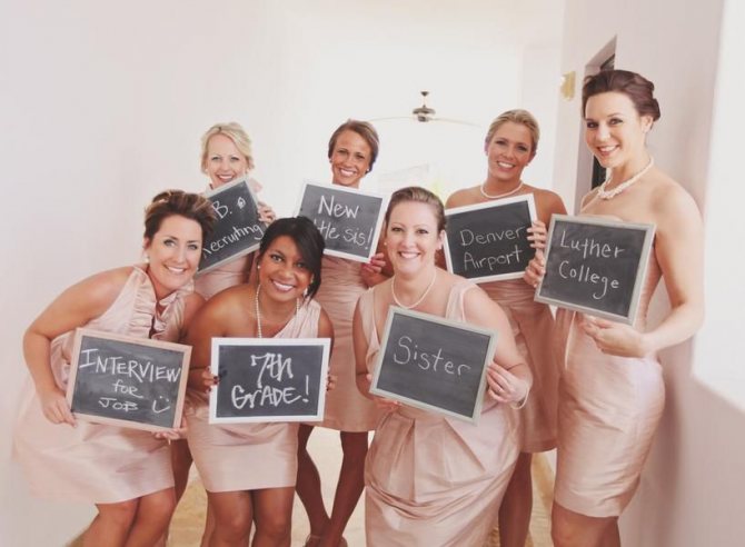 Для подружек невесты словосочетания не должны повторяться, если вы решили каждой присвоить свое. В ином случае можно взять, например, популярную фразу «Банда невесты».