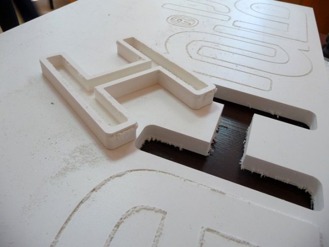 Технология создания изделий ничем не отличается от той, которую мы применяли для деревянных конструкций. Рисунок наносится на поверхность пенопласта, с помощью острого инструмента выпиливаются буквы, после чего шлифуются, чтобы не осталось неровностей, а поверхность была гладкой.