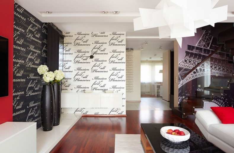 Если нет в планах создать надпись для определенного участка стенки, тогда воспользуйтесь готовым масштабным решением — обои с надписями. Однако не нужно оклеивать все помещения в подобном материале.