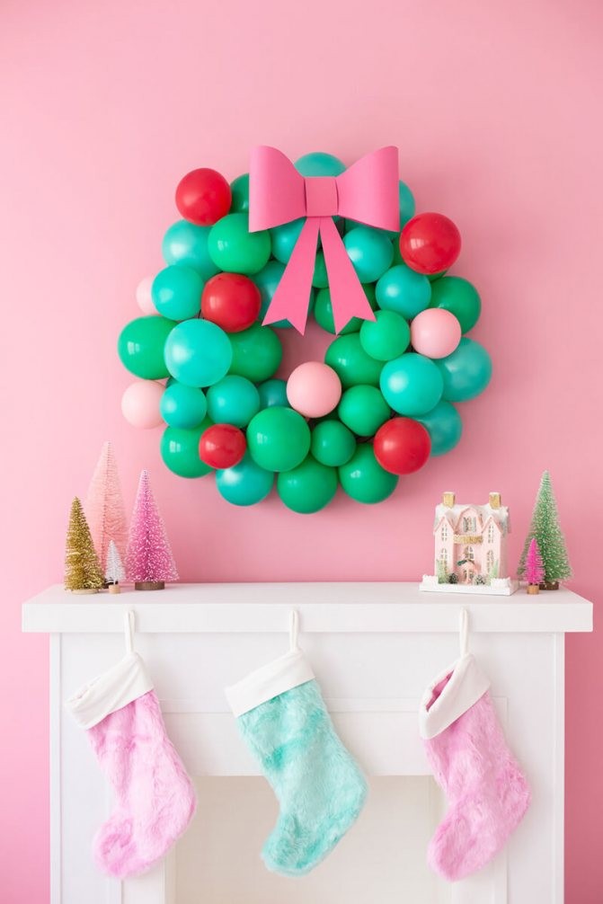 Эффектным и удивительно красивым украшением на Новый год и Рождество может стать новогодний венок из воздушных шаров.