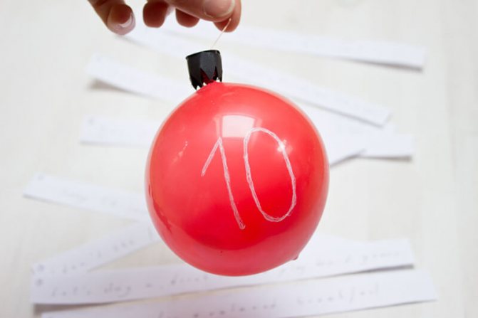 В каждый шарик не забудьте положить записку или маленький подарок, и написать на шарике число месяца, ведь мы делаем адвент календарь.