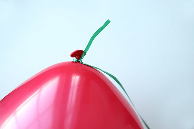 Надуваем шарик, привязываем к хвостику веревку. В одноразовом стаканчике делаем отверстие и продеваем веревку, накрываем хвостик шарика одноразовым стаканчиком и фиксируем его в таком положении узелком.