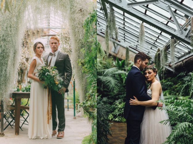 - Ботанические сады, оранжереи. Насыщенные зеленые растения будут выгодно смотреться на кадрах, особенно если за окном дождливая поздняя осень. В промозглый день вы будто попадаете в частичку лета. В таких местах на фотографиях можно запечатлеть не только жениха и невесту, но и всех гостей.