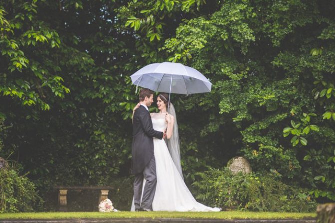 Дождик – не помеха для красивой свадебной фотосессии. Запаситесь нужными реквизитами, чтобы пасмурный день превратился в буйство красок.
