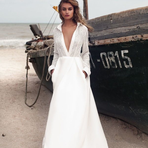 Сюда же можно отнести и брючные костюмы — еще один сигнал об упрощении свадебной моды. Костюм может быть лаконичным, а может быть дополнен изысканными кружевными вставками.
