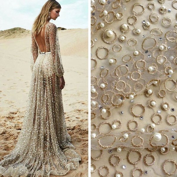 Если вы боитесь, что платье будет чрезмерно сияющим, то можно сделать акценты в виде кружевных или расшитых пайетками вставок. Обратите внимание на матовый металлик — такой эффект смотрится роскошно и стильно.