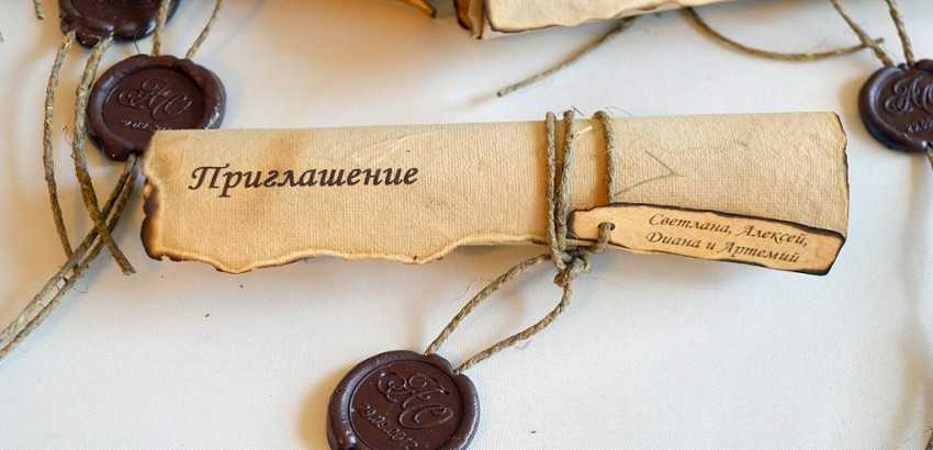 При рассылке могут возникнуть определенные сложности. Свитки не влезут в обычный конверт. Можно, конечно, поместить их в коробочку и отправить по почте бандеролью, но теряется вся торжественность, да еще приглашенному придется идти получать бандероль лично.