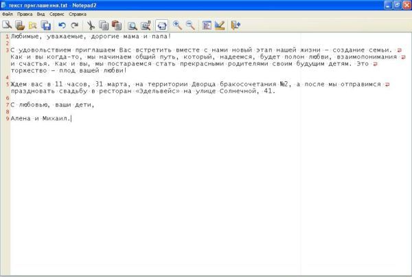 - Если файл скачан с официального сайта, то в открывшемся окне есть все необходимые пояснения, поэтому необходимо только перенести пригласительный текст.