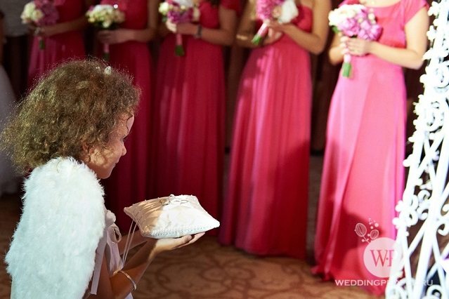 Есть еще один способ добавить этой процедуре изысканности и романтики – пусть кольца молодоженам вынесет кто-то из юных родственников в красивом наряде или тематическом костюме.