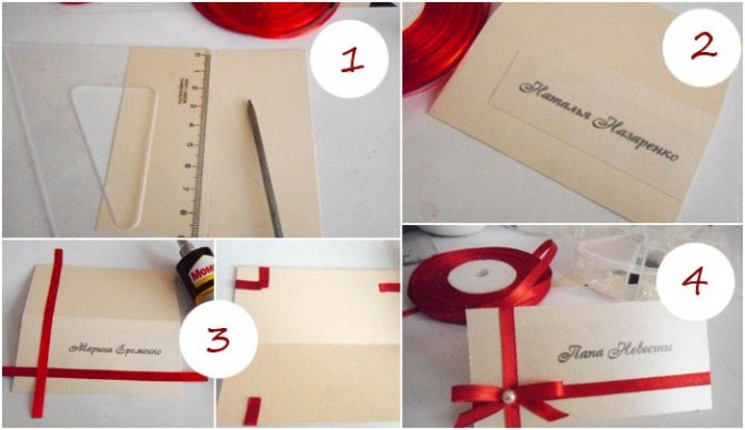 - Напишите или напечатайте имя приглашенного человека, приклейте двусторонним скотчем к лицевой стороне.