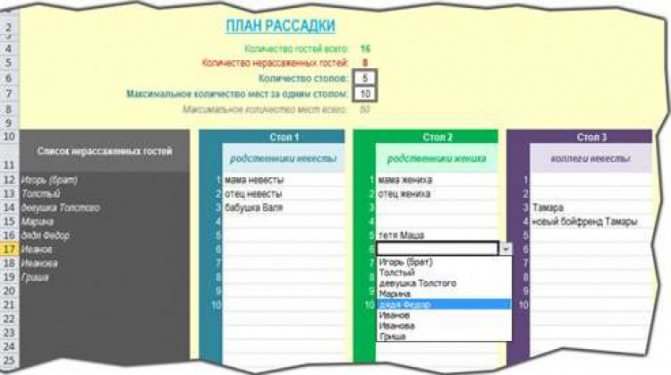 Планировщик отлично поможет за быстрое время распределить посадку каждого. В нем заключается 3 элемента: