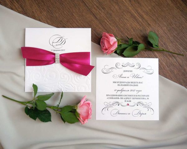 Стоит обратить внимание на шаблоны пригласительных писем, в которых будет заключено послание для тех, кто приглашен на торжество. Например, если хотите сделать свадьбу в цвете фуксия и мята, то сам конверт может быть мятного оттенка, а вкладыш – цвета фуксия.