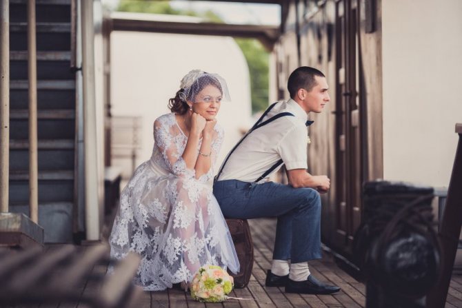 Для жениха цветная свадьба – это прекрасный повод показать себя в самом выгодном свете. Допустимо все: расшитый золотом камзол в средневековом стиле, свободный стиль с одной яркой рубашкой и свободными брюками, строгий костюм в стиле 30-х годов, различных оттенков, от серо-стального, темно-фиолетового до песочного, коричневого или черного. На ноги можно надеть и лаковые ботинки, и демократичные кеды, и сапоги в стиле ковбоев. Не следует забывать и об аксессуарах, дополняющих облик: трости, зонты, шляпы, галстуки и шейные платки, запонки, часы на цепочке. Все это создает определенный стиль, который станет основой для этого торжественного дня.