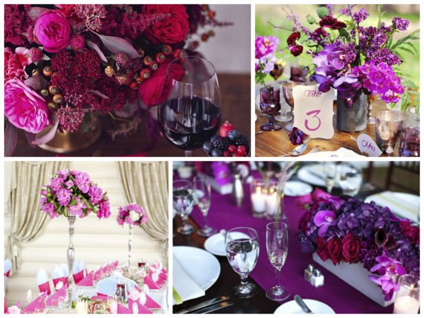 - Старая фуксия — приглушенный оттенок фиолетового, этот цвет можно выбрать для торжества в стиле ретро.