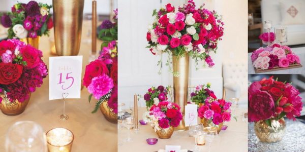 Цвет фуксия полон смелой романтики. Он краснее пурпурного, но все же глубже розового, а этот оттенок, как известно, символизирует страсть. В то время как можно использовать некоторые элементы в небольших дозах и смягчать их с более приглушенной палитрой в день свадьбы, также можно поэкспериментировать, если решено сделать свадьбу в цвете фуксия и золото. Стоит соединить это с металлическим партнером в больших щедрых всплесках, и цветовая схема свадьбы обязательно окажется выигрышной.
