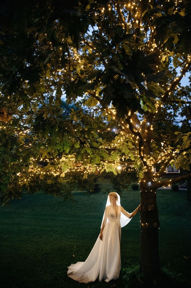 Благодаря рукавам платья, открытой спине, почти незаметной «замочной скважине» на спине, можно почувствовать себя буквально вне этого мира. Это идеальное цветное свадебное платье для невест, которые по-прежнему хотят, чтобы образ получился полумистическим.