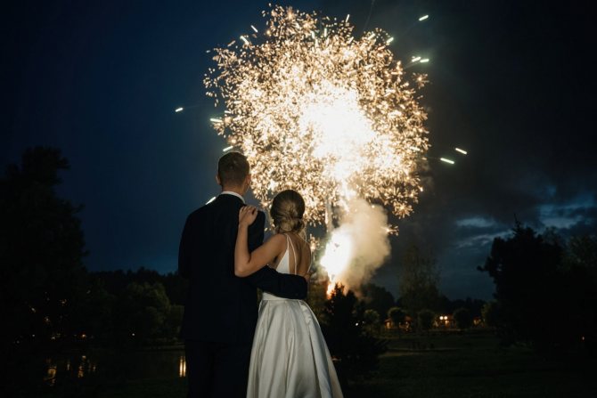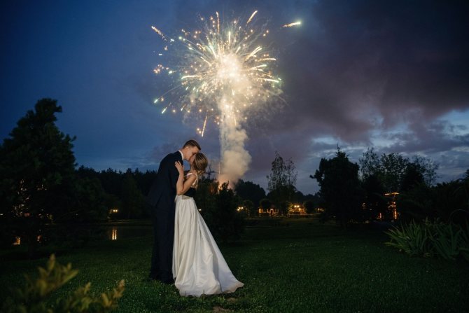 Когда влюбленные выбирают именно этот цвет, то это означает, что молодожены хотят подчеркнуть тот факт, что в их паре присутствует романтизм, уверенность и спокойствие. Кроме того, данный оттенок помогает развить привязанность друг к другу, что особо актуально для влюбленных в такой вечер.