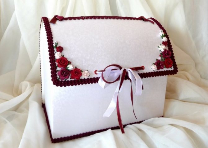 - Приглашения, напечатанные на белой бумаге, вкладывают в малиновый конверт и декорируют бусинами, кружевной тесьмой и лентами.
