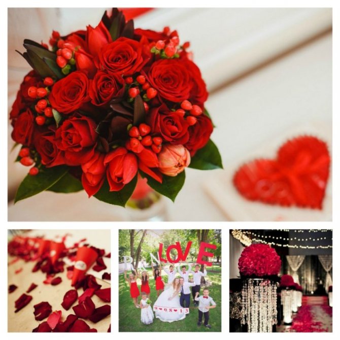 В всемирной сети есть массы актуальных и оригинальных идей по поводу такой свадьбы. Главное — не переусердствовать с красным и оттенить его другим цветом, чтобы все сочеталось гармонично.