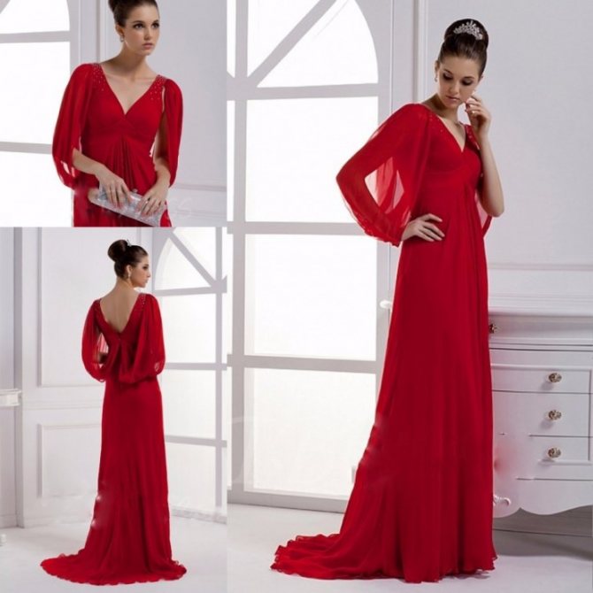 Наряду с красным можно включить в платье белый, ярко-синий, зеленый. По-королевски будет смотреться золотистая или серебристая отделка.