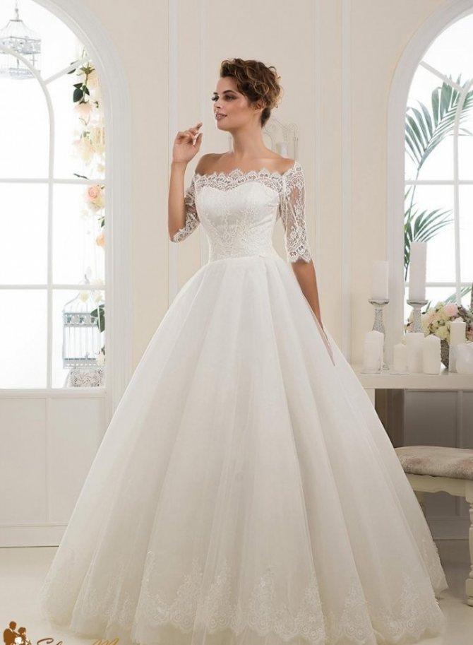 | С рукавами | Обычно используют полутонкие материалы — такие как шифон, гипюр. Длина зависит от пожеланий невесты. |
