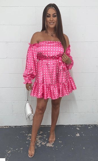 Розовое платье, связанное вручную или на машинке, – еще один вариант женственного образа. Недостаток такой одежды – неравномерное вытягивание деталей в процессе носки.