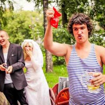 А можно выбрать образ жениха в малиновом пиджаке с массивной цепью или вообще спортивный костюм.