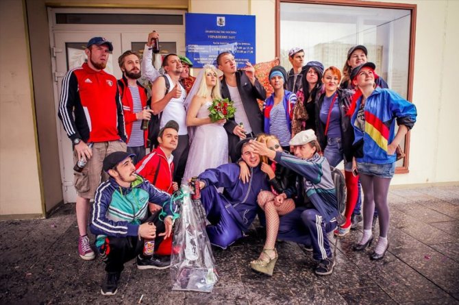 Девчонки встречали ребят у подъезда с выпивкой и сложными заданиями. Жених для пафоса все время с кем-то созванивался по телефону, который мы сейчас называем «орехокол». Но на самом деле он никуда не звонил, потому что тарифы были заоблачные. Скорее всего, просто счет проверял. Уезжали в ЗАГС громко, под музыку Руки Вверх, Ласковый Май или Кар-Мен.