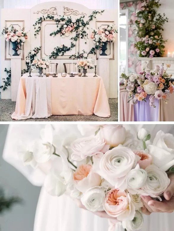 Не совсем классика, но очень к ней приближена. Самый распространенный выбор среди молодоженов. Наполнить красотой такую свадьбу можно с помощью изысканной и нежной флористики и элегантных элементов декора.