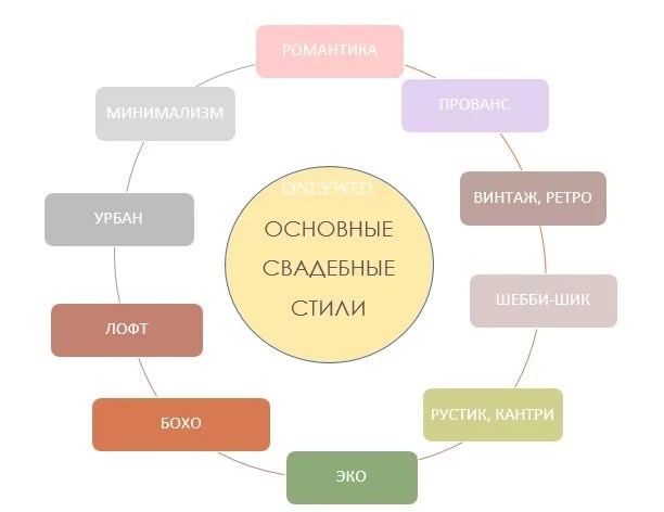 Разобравшись, чем отличаются «тематическая свадьба» от «классической свадьбы», можно переходить к рассмотрению популярных свадебных стилей.