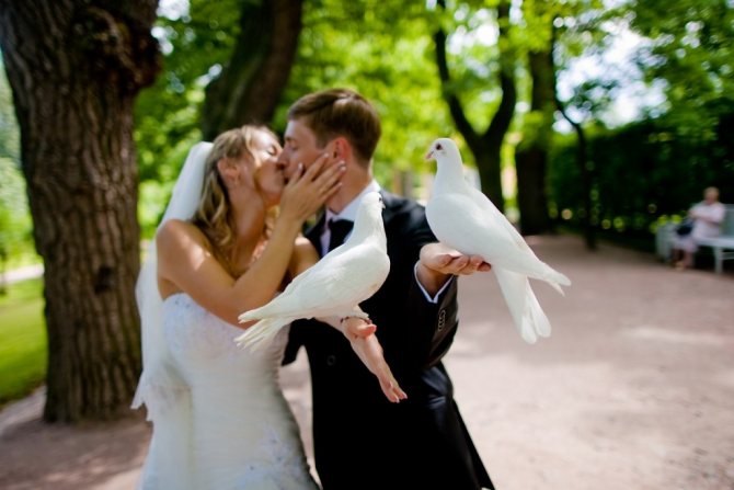 Ставшие классикой белоснежные голуби, очаровательные пушистые кролики, преданный пес или экзотический крошечный поросенок — животные сделают кадры еще более нежными, трогательными, интересными. Главное, не оставляйте живых существ в каком-нибудь вольере или клетке на весь праздничный вечер, это станет для них мукой!