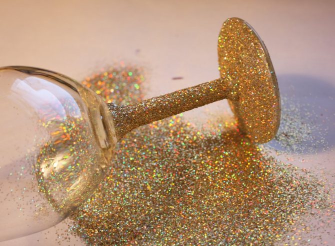 - На ножку распылите специальный спрей, поставив фужер на стол вверх дном. Предварительно отступите на пару шагов.