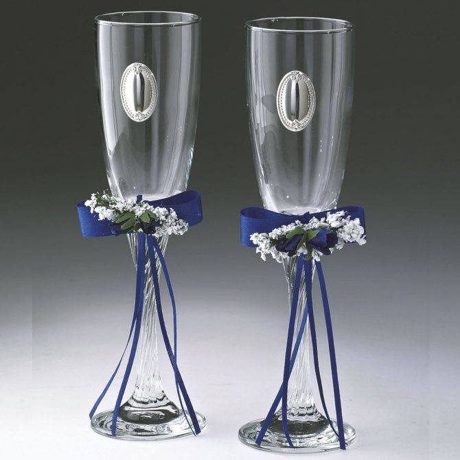 И речь, прежде всего, идет о бокалах для молодоженов, которые можно приобрести в любой свадебной мастерской, но лучше украсить их своими руками, тогда они станут центром всеобщего внимания. Кроме того, декор бокалов своими руками – весьма увлекательное дело, которое позволит вам расслабиться во время предсвадебной суматохи.